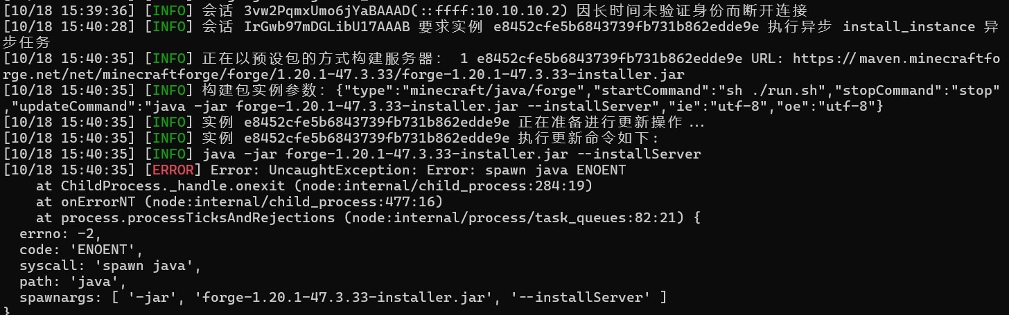 查看 Docker 日志发现,原来是 daemon 容器里没装 Java!解决方法很简单: