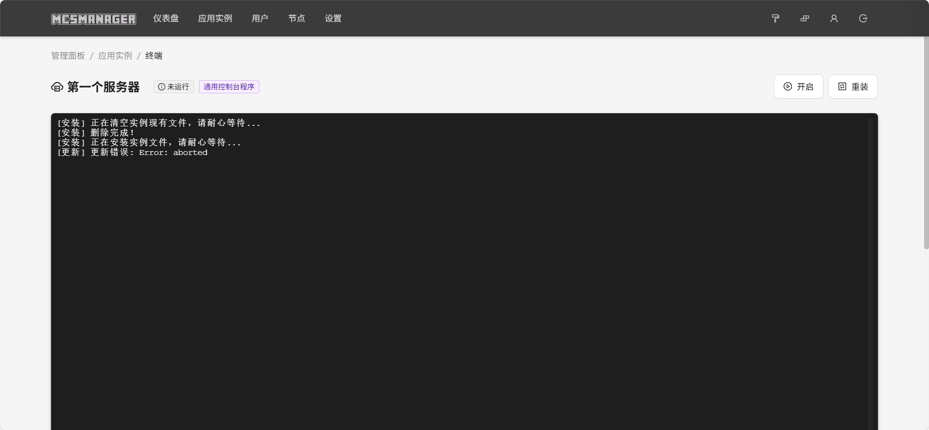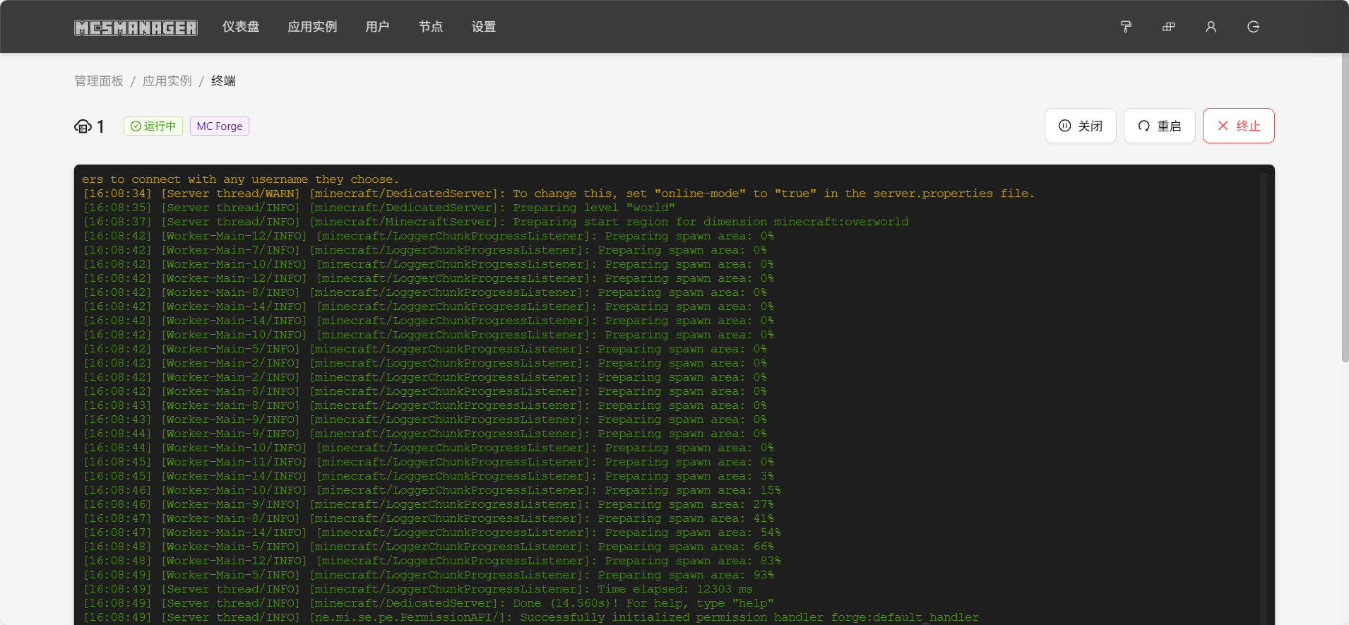 完成后回到面板,重新启动实例,终于成功开服啦!